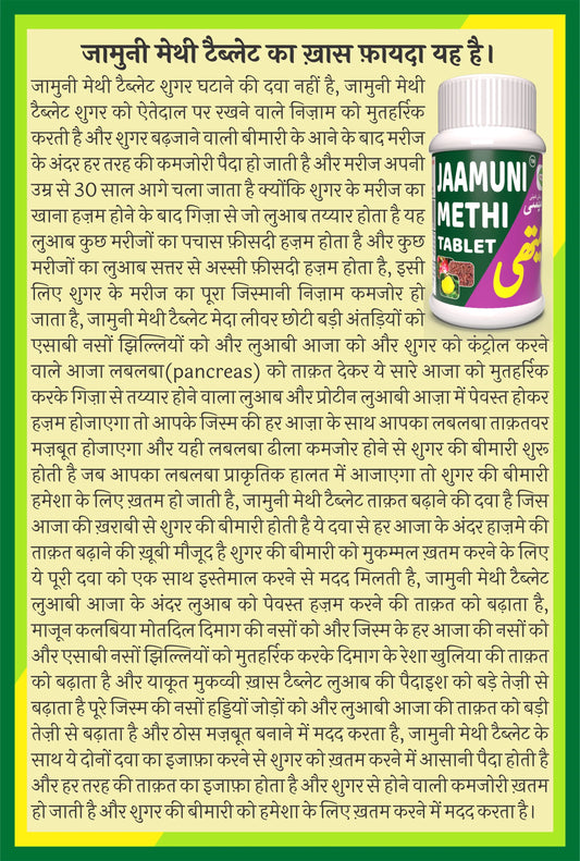 Jaamuni Methi 60 Tablet – Balances sugar, strengthens the pancreas, boosts digestion, enhances organ health, and restores energy for lasting vitality!