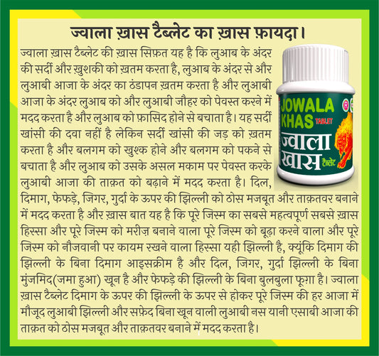 Jowala Khas 30 Tablet: Enhances organ health, eliminates coldness, promotes fusion, prevents saliva corruption, and strengthens membranes for vitality