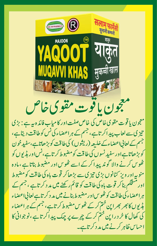 Yaqoot Muqavvi Khas 100gm Majoon | A natural herbal Medicine that improves joints lubrication, strengthens nerves, boosts immunity, supports strong bones, and refreshes skin for a healthier, more youthful you
