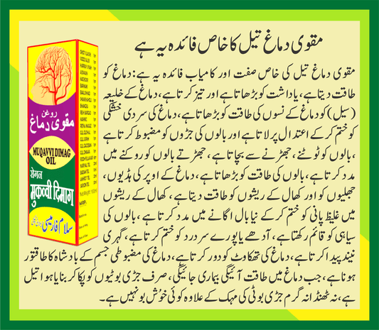 Muqavvi Dimag 100ml Oil – Herbal brain tonic that boosts memory, strengthens brain and hair roots, prevents hair fall, and promotes mental vitality.