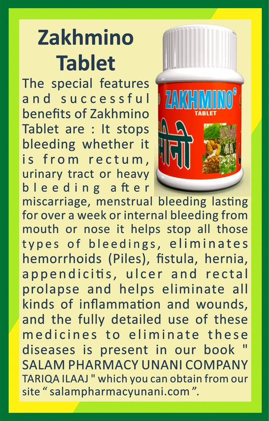 Zakhmino 60 Tablet: Stops bleeding from the rectum, urinary tract, post-miscarriage, heavy periods, or nose/mouth bleeding due to internal injury.