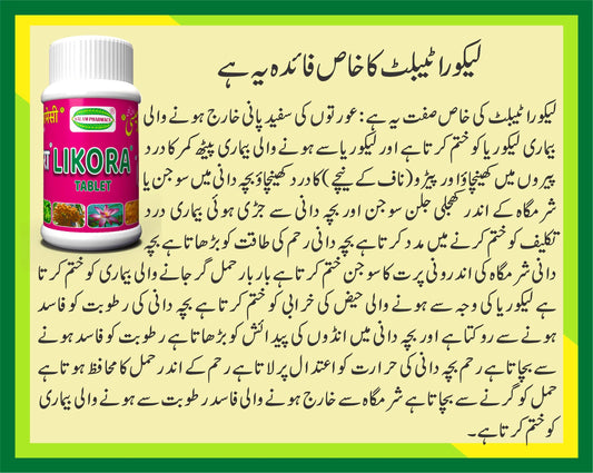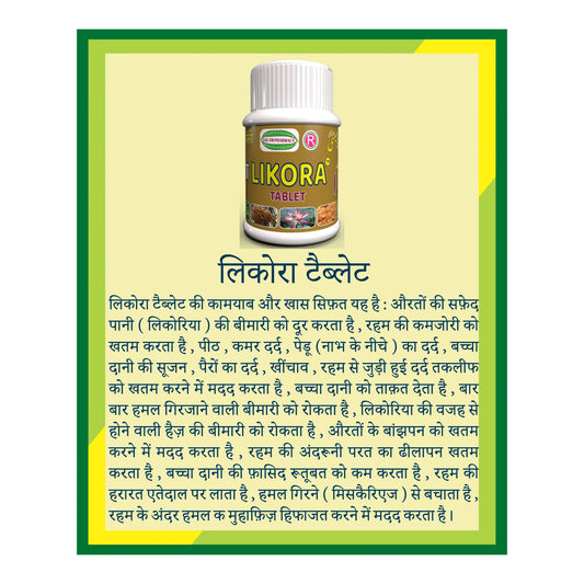 Likora 60 Tablet – Treats leukorrhea, relieves pain, strengthens the uterus, and supports reproductive health for overall women's well-being